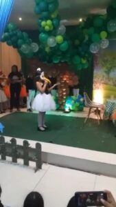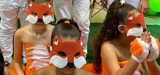 Crianças do Colégio Pequeno Polegar fazendo apresentação de dança.