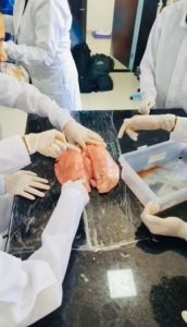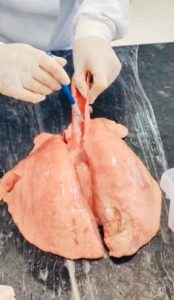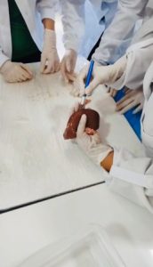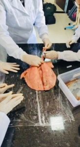O projeto foi desenvolvido por meio de atividades práticas em laboratório, nas quais os alunos observaram estruturas reais do corpo humano, como pulmão, rim e fígado. Nesse momento, os estudantes analisaram as características dos órgãos, levantaram hipóteses e estabeleceram relações entre as estruturas observadas e suas funções, favorecendo a compreensão dos processos fisiológicos de forma concreta.